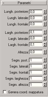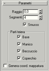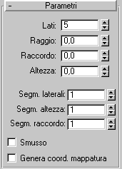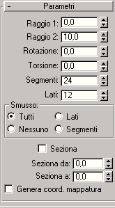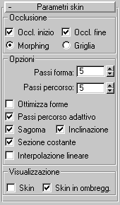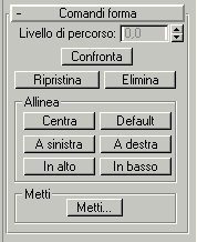 Passi: Numero massimo di segmenti di linea utilizzati per l'approssimazione di ogni segmento di curva. Se la curva visualizzata o renderizzata da 3DS MAX presenta degli angoli, aumentare questo valore. Il comando è disabilitato fino a quando non si disattiva Adattivo. Il valore Passi può essere compreso tra 1 e 100.