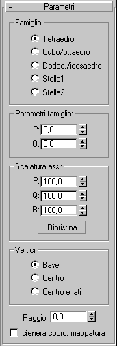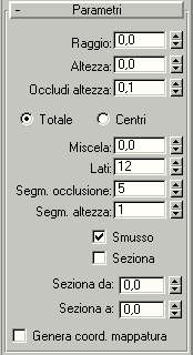 Genera coord. mappatura: Genera le coordinate di mappatura in modo da consentire l'applicazione di materiali mappati alla curva renderizzabile.