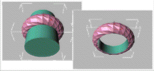 Suggerimento: Quando si crea una superficie complessa, specialmente con il modificatore Tornio, spesso si richiede il rendering di entrambi i lati della superficie. Attivare Forza 2 lati nella finestra di dialogo Rendering in scena per vedere entrambi i lati della superficie estrusa o tornita. Per osservare entrambi i lati nella finestra di visualizzazione, attivare l'opzione Forza 2 lati nella finestra di dialogo Configurazione finestra.