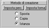 La creazione di sub-oggetti curva VC e curva punto è identica alla procedura di creazione al livello superiore, con una eccezione. Quando si crea una curva VC o curva punto come sub-oggetto, appare la tendina seguente in fondo al pannello comandi: