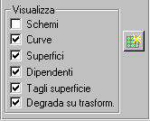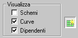Schema: Se attivato, visualizza gli schemi di controllo con linee gialle tratteggiate (il colore dello schema può essere modificato utilizzando il pannello Colori di File/Preferenze). I livelli sub-oggetto VC curva e VC superficie prevedono anche una casella-interruttore locale Visualizza schema, che supera questa impostazione globale a livello sub-oggetto. Le impostazioni di VC curva e VC superficie sono autonome, vale a dire che a livello sub-oggetto è possibile attivare lo schema per le curve di un oggetto ma non le superfici, o viceversa.
