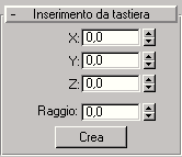 La tendina Inserimento da tastiera contiene tre campi per le coordinate