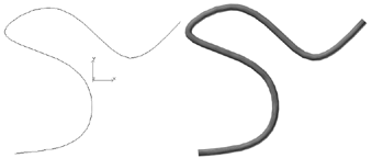 Ad una curva NURBS può essere assegnato uno spessore in modo da farla renderizzare come oggetto cilindrico (la curva con spessore viene renderizzata come mesh poligonale, non come superficie NURBS).