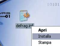 Poi salviamo il file con nome "defrag.inf", con le virgolette, altrimenti verrà