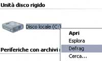 possibilità di effettuare il defrag perché la voce non è presente nel relativo