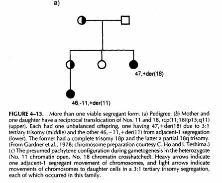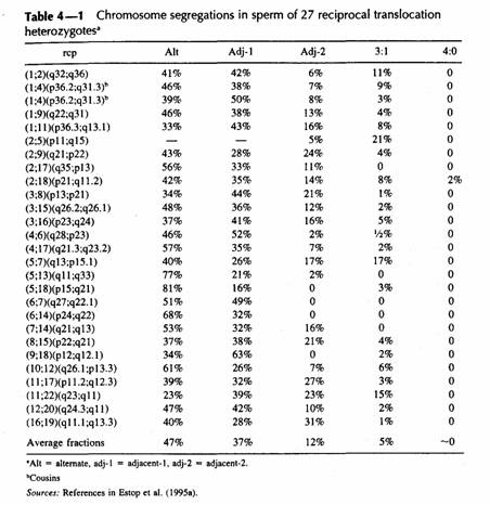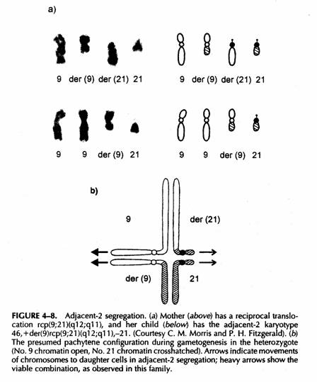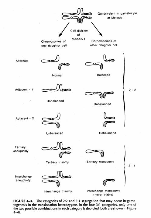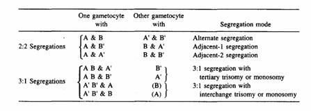 Normalmente alla meiosi le segregazioni alternate ed adiacente-1 si hanno nel 47 e 37% dei casi, adiacente-2 12%, 3:1 5%.