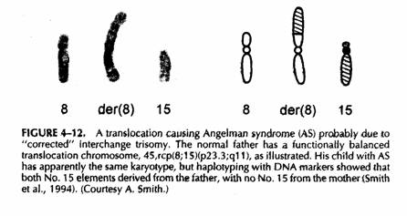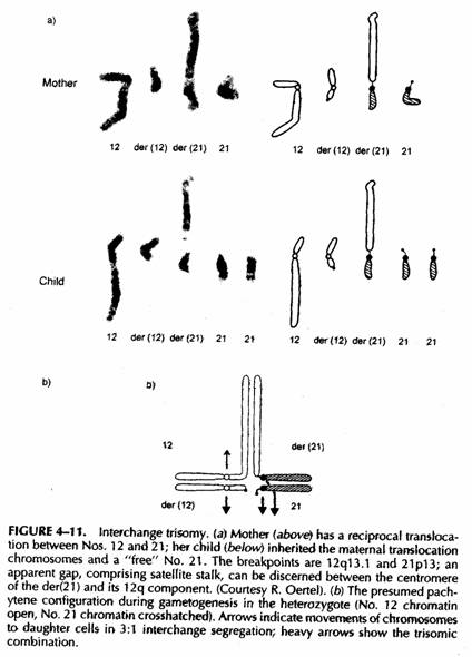 Può avvenire quando un cromosoma trisomicamente vitale (13, 18 o 21) partecipa alla traslocazione. Trisomia 21 interchange è rara e 13 e 18 rarissima