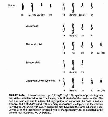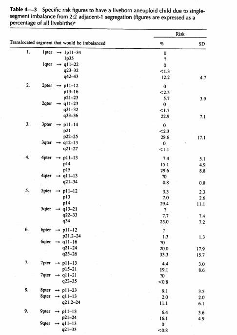 Dei nati con sbilanciamenti da genitori portatori di traslocazione 71% adiacente-1, 4% adiacente-2, 22% trisomie monosomie terziarie e 2,5% trisomia da interscambio. 151w2219b