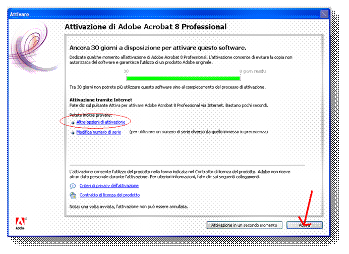 A questo punto ci chiederą di attivare il prodotto. Scegliamo altre opzioni di attivazione e poi facciamo clic su "attiva".