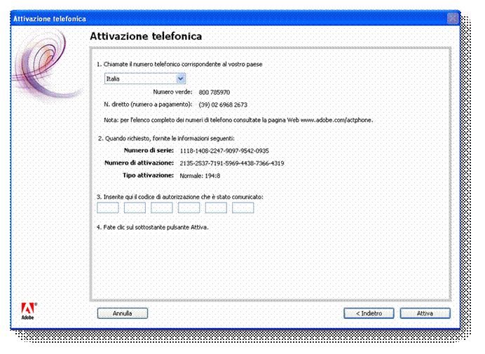 Scegliamo attivazione telefonica e procediamo come in figura.