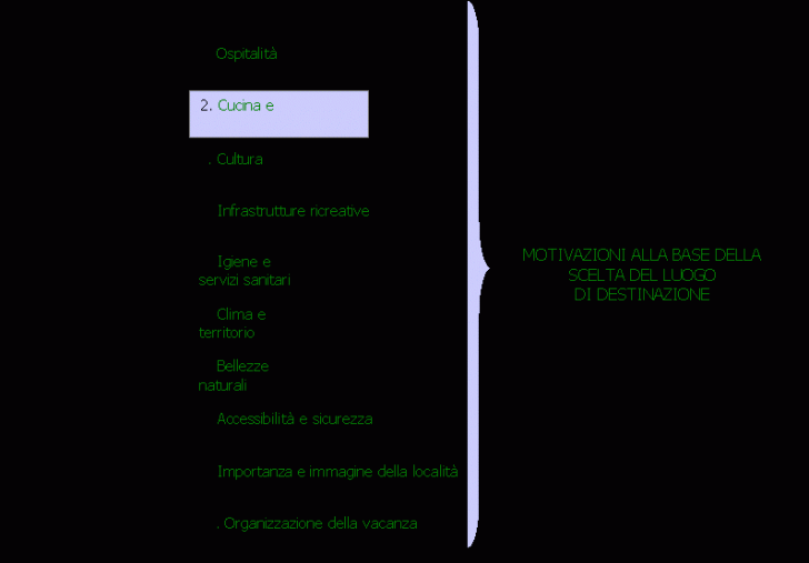 § 10210q1613k 10210q1613k Elementi essenziali: insieme di attrattive che contraddistinguono l'area geografica di destinazione vale a dire l'insieme dei bisogni (culturali, sociologici, politici, fisici, .) che il turista ritiene di poter soddisfare in quel luogo. Da essi dipende la scelta della località.