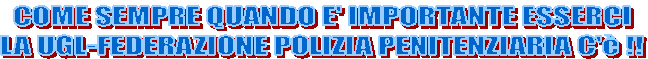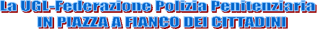 Di seguito alle manifestazioni di protesta della UGL, si annuncia una manifestazione delle Organizzazioni Sindacali della Polizia Penitenziaria con USPP *UGL-fnpp,LISIAP,CLPP* CGIL, CISL, UIL, OSAPP e SIAPPE per il giorno 16/11/2006, la maggioranza del personale di polizia penitenziaria sindacalizzato ... . Dai più voce alla UGL, iscriviti e fai iscrivere con noi !! Scarica la delega di iscrizione dal nostro sito web