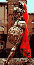 teatro i guerrieri, nelle armature splendenti, compiono imprese meravigliose,
