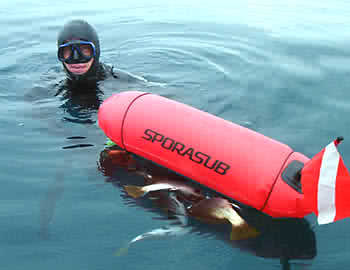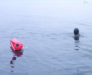 Non crediate, comunque, che pur attuando tutte queste cautele sia possibile risolvere completamente i problemi che derivano dal portarsi dietro la boa segnasub: pescare all'agguato in pochi metri d'acqua risulta in taluni casi impossibile, tanto per fare un esempio. Inoltre è assolutamente necessario ridurre al minimo le possibilità che il monofilo si impigli sulle nostre attrezzature. In primo luogo è da escludere categoricamente il coltello al polpaccio: è preferibile collocarlo in cintura o al braccio, altrimenti il monofilo vi si impiglierebbe di continuo (così come il semplice sagolone, del resto).