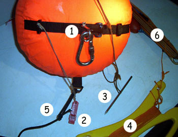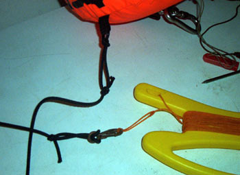 Ai fini della sicurezza, infine, può rivelarsi utile tenere appeso al pallone anche un fischietto, del tipo che troviamo di solito applicato ai giubbotti di sicurezza in dotazione al nostro mezzo nautico: può richiamare l'attenzione di qualche incauto diportista diretto sulla nostra verticale ma, più semplicemente e più spesso, potrà attirare l'attenzione del nostro indolente barcaiolo, assopitosi sul prendisole invece di sorvegliare la nostra azione di pesca.