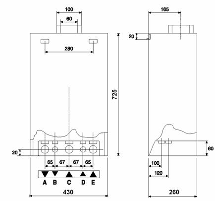 dimensioni delle caldaie ed ubicazione degli attacchi
