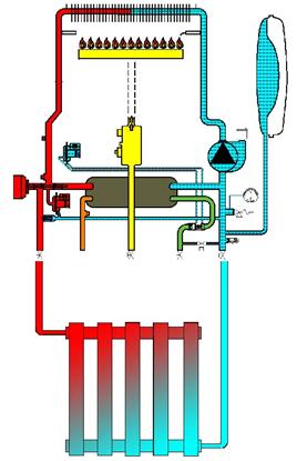 Trasmette il calore dei prodotti della combustione all'acqua che circola sia nei radiatori, sia nello scambiatore sanitario.