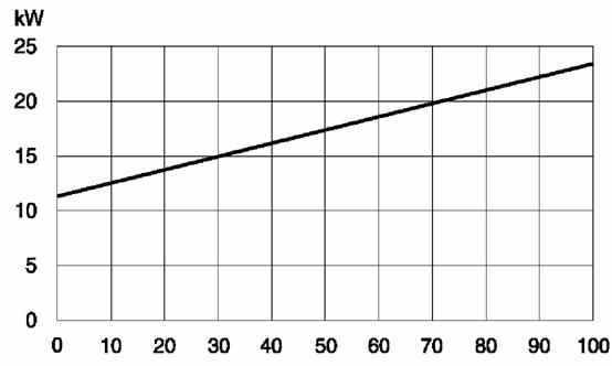 La potenza della caldaia dipende dalla velocità del ventilatore, un aumento della velocità corrisponde ad una potenza maggiore
