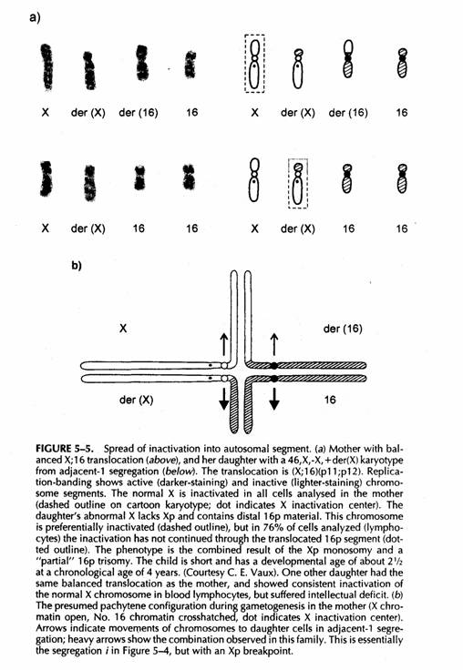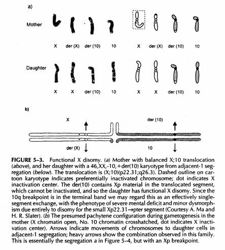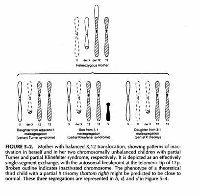 In un figlio sbilanciato di un portatore di traslocazione X-autosomica l'effetto dello sbilanciamento può essere mitigato dalla inativazione selettiva della X anormale. In questo caso anche la trisomia parziale per il segmento traslocato può essere corretta sempre che lo spread della inattivazione sia completo.
