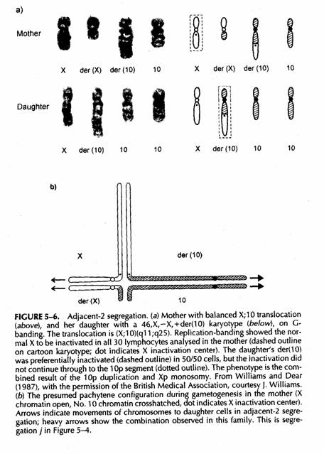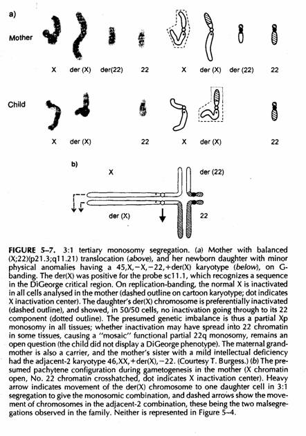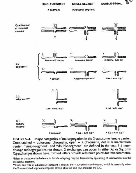 con una segregazione adiacente-1 ci possono essere effetti di una combinata disomia funzionale della X e monosomia autosomica, od una monosomia della X ed una trisomia autosomica.