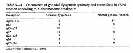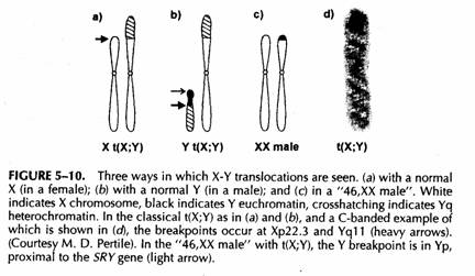 TDY viene a trovarsi su un altro cromosoma. Il soggetto ha 45 cromosomi e può apparentemente sembrare un 45,X