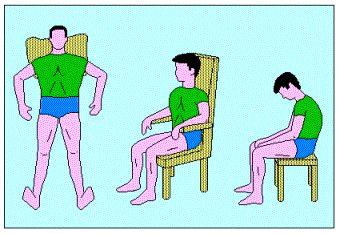 2) posizione seduto su una poltrona: schienale e braccioli devono essere tali da consentirti di poggiare rispettivamente la testa e gli avambracci. Evita poltrone troppo morbide o troppo basse.