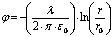 uzlādēta ar blīvumu τ = 2 µC/m. a) Atrast E un φ ka attāluma r funkcijas.