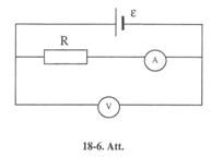 18-34. Pieņemot, ka ampērmetra pretestība ir bezgalīgi maza, tiek aprēķināta reostata pretestība R pēc ampērmetra un voltmetra rādījumiem 18-6 attēla shēmā. Noteikt atrastās pretestības relatīvo kļūdu, ja patiesībā ampērmetra pretestība ir RA. Uzdevumu atrisināt, ja RA = 0.2 W un 1) R = l W; 2)R = 10 W; 3) R = 100 W