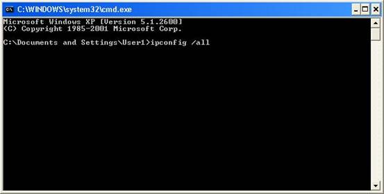Atvērsies komandrinda, kurā jāuzraksta komanda ipconfig /all un jānospiez Enter!