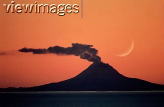 No vulkāna krātera plūst gāzes, ūdens tvaiki, vulkāniskie pelni, kas veido virs vulkāna liesmojusu, tumsu, kodīgu mākoni.