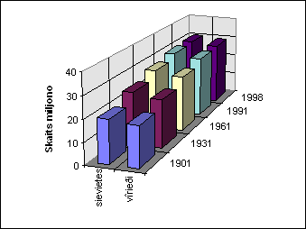 4. tabulā ir vērojams iedzīvotāju skaita pakāpenisks pieaugums no 1901. līdz 1998. gadam, turklāt sievietes visos laikos ir bijusas vairāk kā vīriesi.