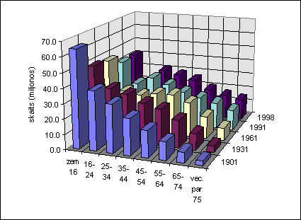 5. tabula. Par cik cilvēku vidējais mūza ilgums no 1901. gada līdz mūsdienām ir paaugstinājies, ir palielinājies cilvēku skaits, kas pārsniegusi 50 gadu vecumu. Līdz ar to, neskatoties uz dzimstības samazināsanos, ir pieaudzis cilvēku skaits. Tas skaidrojams ar dzīves līmeņa uzlabosanos.