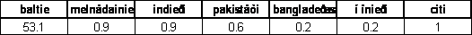 6. tabula. Pēc 1991. gada datiem ir redzams, ka lielākā iedzīvotāju daļa ir ar balto ādas krāsu - vairāk kā 90%. Pārējās etniskās grupas nepārsniedz vairāk kā vienu procentu katra. Taču Londonā iebraucēju īpatsvars ir krietni lielāks - Londonā dzīvo dazādu tautību cilvēki, kas runā dazādās valodās.