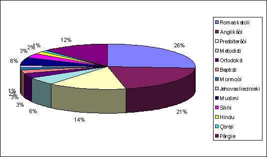 7. tabula. Lielākā Apvienotās Karalistes iedzīvotāju daļa pieder pie Romas katoļu, anglikāņu vai presbiterāņu draudzes. Apvienotajā karalistē reliģiskais sastāvs mainās ļoti lēni, tāpēc sādus aprēķinus veic ļoti reti.
