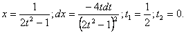 Keičiame integravimo kintamąjį pagal lygybę: t = 1 + x2. Kintamojo t rėziai: t1 = 1, t2 = 2.