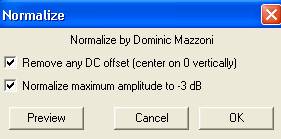 Garso signalo normalizavimas. Is skirtingų saltinių paimti įrasai gali būti skirtingų garsumo lygių, t.y. skirtingų amplitudzių. Leidziant tokius įrasus vieni garsai skamba garsiau, kiti tyliau, ir klausytojas būna priverstas nuolat reguliuoti audiosistemos garso lygį. Sito galima isvengti pritaikius normalizavimo funkciją - ji pagal uzduotą maksimalią visų įrasų amplitudzių reiksmę proporcingai perskaičiuoja visų garso įrasų signalų lygius (pav.10). Tačiau jei įrasai yra blogos kokybės, triuksmingi, normalizacijos atlikti nerekomenduojama, nes tokiais atvejais nustatoma ne maksimali naudingo signalo, bet traskesio amplitudės reiksmė ir jokios naudos is tokio apdorojimo nebūna.