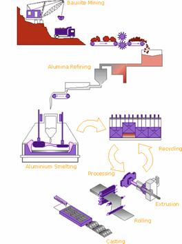 Aliuminis: nuo kasybos iki perdirbimo fabriko