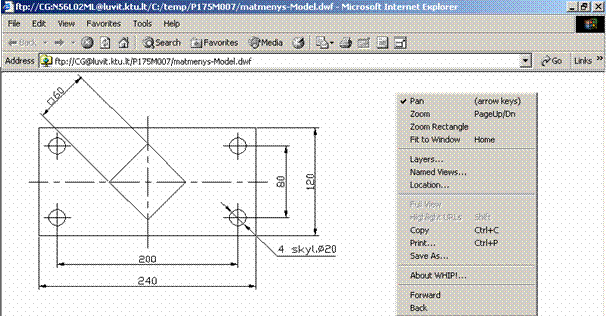Brėzinių, patalpintų Web serveryje DWF formatu, perziūra