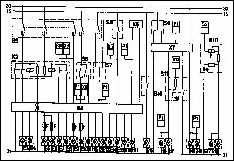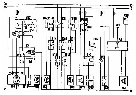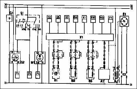 Vokiečių firmų automobilių elektros įrenginių schemos dalis ( Srovės tiekimo. Starterio. Uzdegimo su elektroniniu valdymo bloku. Apsvietimo. Stiklo valytuvų ir apliejiklių. Ausinimo. Ventiliacijos. Garso signalo. Laikrodzio. Radijo).