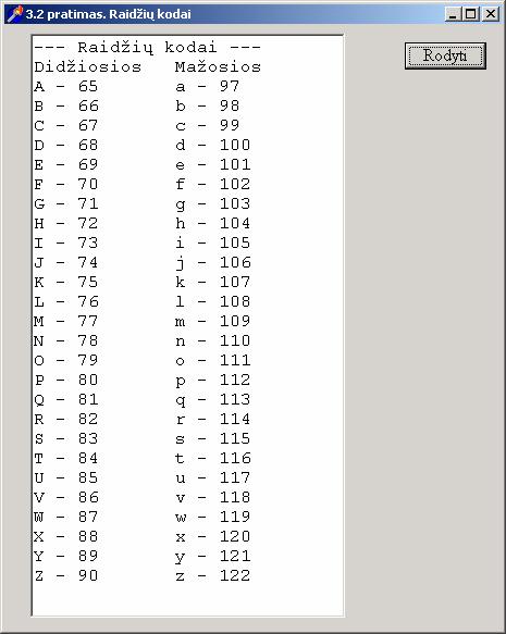 Parasykite, ką ir kaip matysite kompiuterio ekrane, jeigu atliksite nurodytus veiksmus siuose programų fragmentuose.