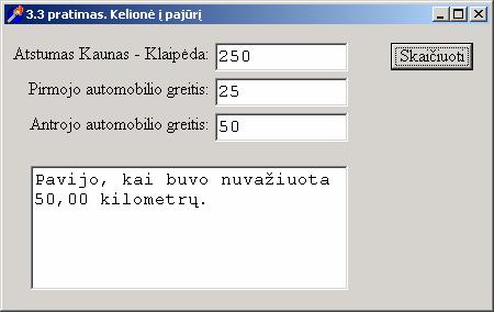 Mūsų sukurtos programos langas skaičiavimų metu parodytas 3.1 pav.