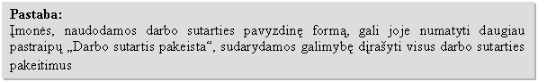 Siame punkte nurodytas darbo uzmokestis ir jo mokėjimo sąlygos gali būti keičiami tik salių susitarimu (isskyrus atvejus, nurodytus Lietuvos Respublikos darbo kodekso 120 straipsnio 3 dalyje).