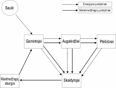 Nors kiekviena ekosistema yra skirtinga ir unikali, tačiau bet kurioje ekosistemoje galima isskirti tokias pat organizmų funkcines grupes, kurios atlieka analogiskus darbus (11 pav.).