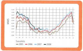 2 pav. Lietuvos energetikos sistemos vartotojų apkrova 2008 m. 10-j¹ savaitź