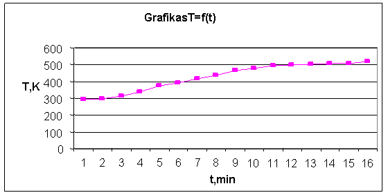 1. Darbo uzduotis. Nubrėzti metalo temperatūros priklausomybės nuo sildymo laiko grafiką, nustatyti lydymosi temperatūrą ir apskaičiuoti atitinkamus entropijos pokyčius.