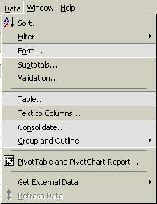 Klavisai darbui su sąrasu rengimo kortelėmis (data form)