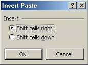 Norima įterpti fragmentą nukopijuokite (Ctrl+C) į kaupyklę, pazymėkite pirmąjį langelio vietą, kur bus įterpiamas fragmentas paspauskite desinįjį pelės klavisą ir atsiradusioje greitojo meniu kortelėje suzadinkite komandą Insert Copied Cells. Kortelėje Insert Paste, įjungdami atitinkamą parametrą nurodykite, kuria kryptimi, į desinę ar zemyn, pastumti senuosius duomenis.