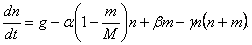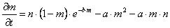 2. Tam tikro modelio dalelių tankių m ir n lygtys sitokios: