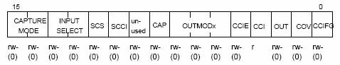 Fiksavimo ir palyginimo kontrolės registrai CCTLx. Kiekvienas fiksavimo ir palyginimo blokas turi 16 bitų kontrolės registrą.