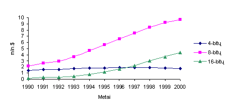 1 pav. Mikrovaldiklių pardavimai pasauliniu mastu (mln.dol. per metus)